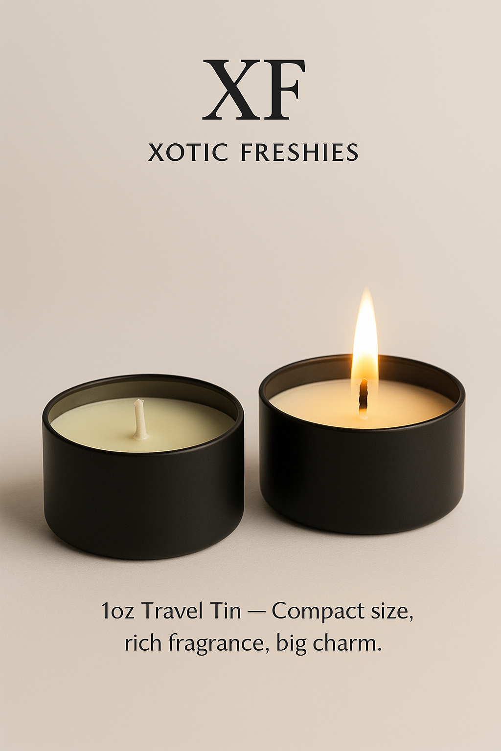 Bring ambiance and fragrance wherever you go with the Xotic Freshies 1oz Travel Tin Candle.